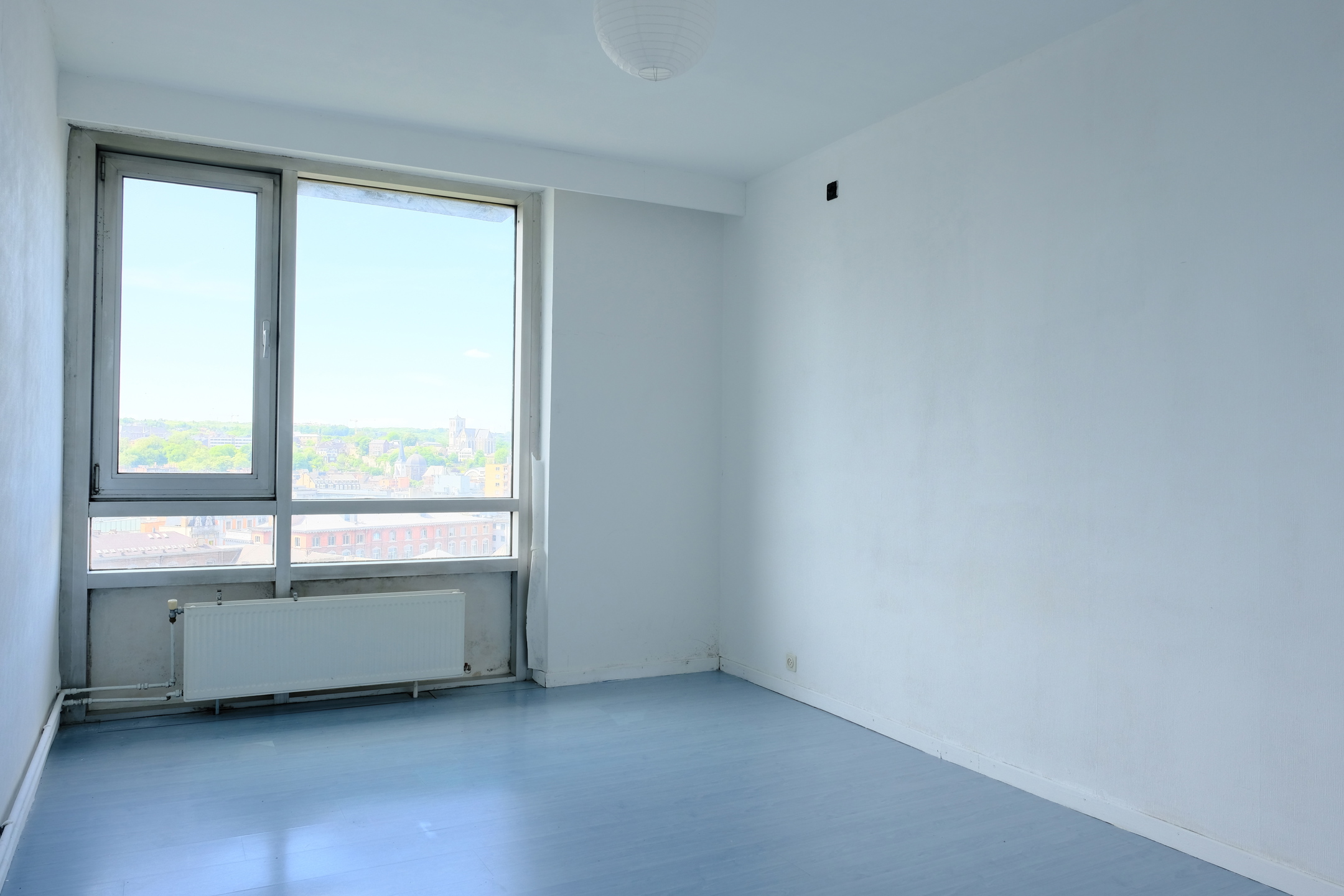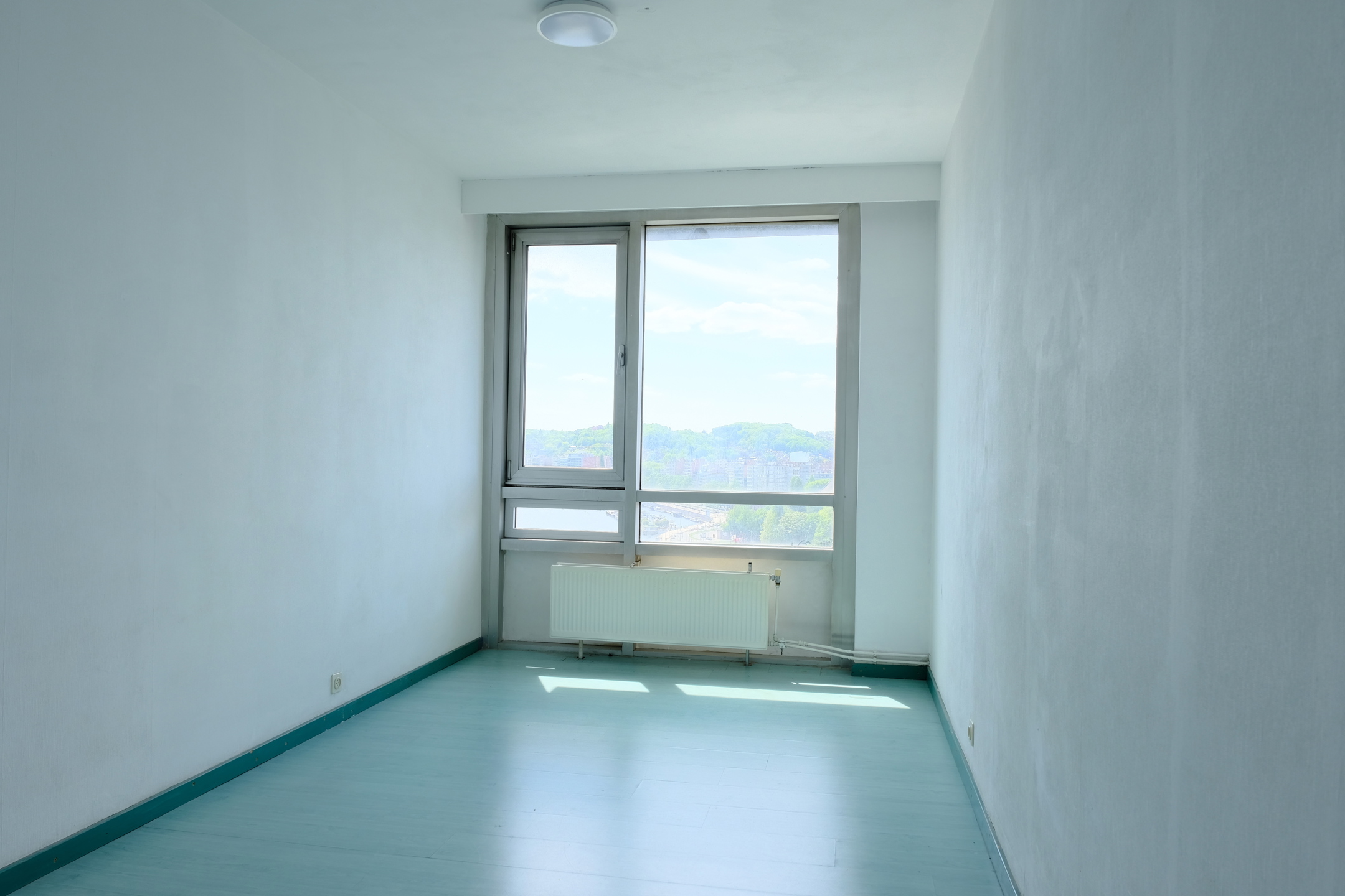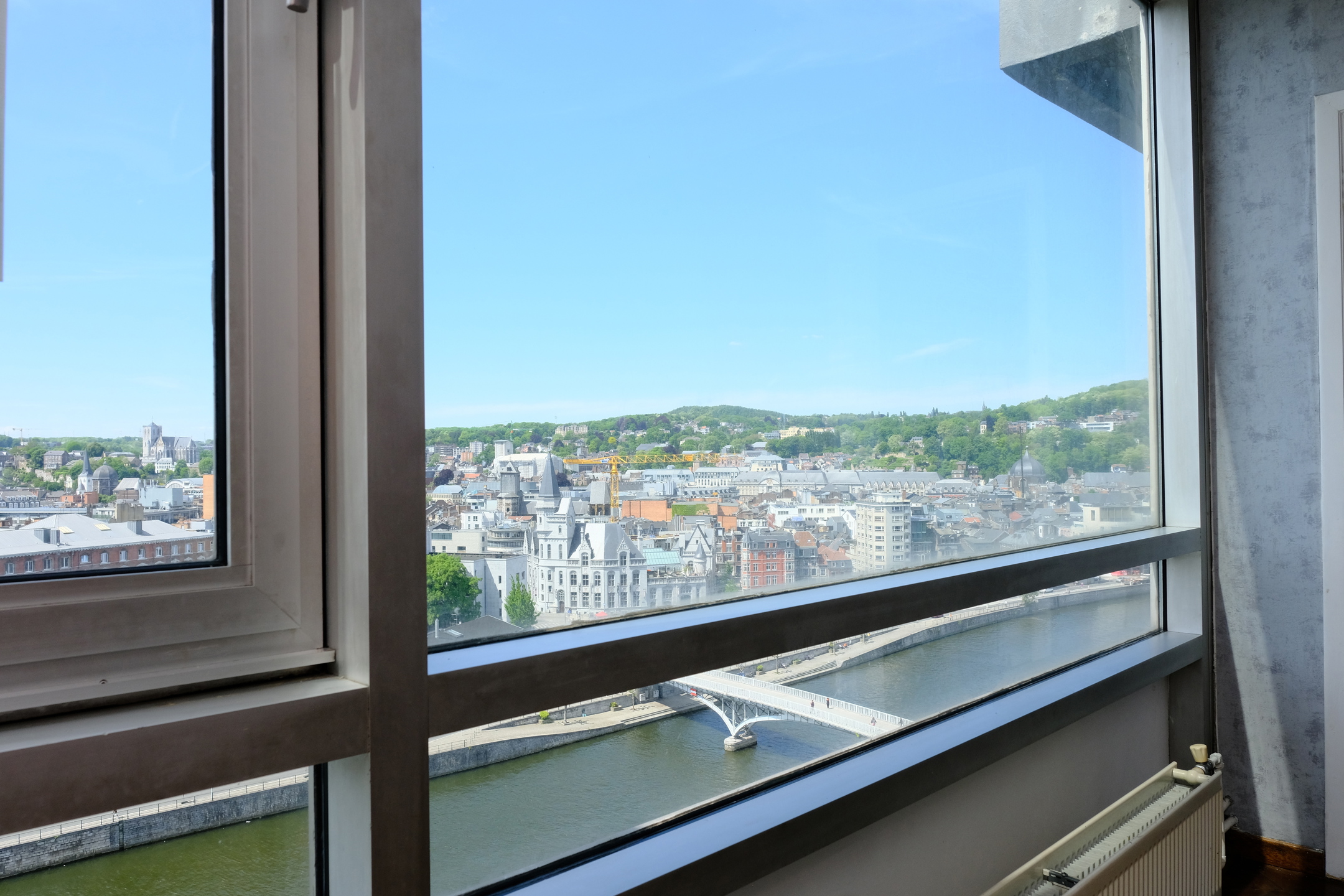 Dans un immeuble de standing au quatorzième étage avec ascenseur, il offre une vue panoramique sur la Meuse et la ville de liège.