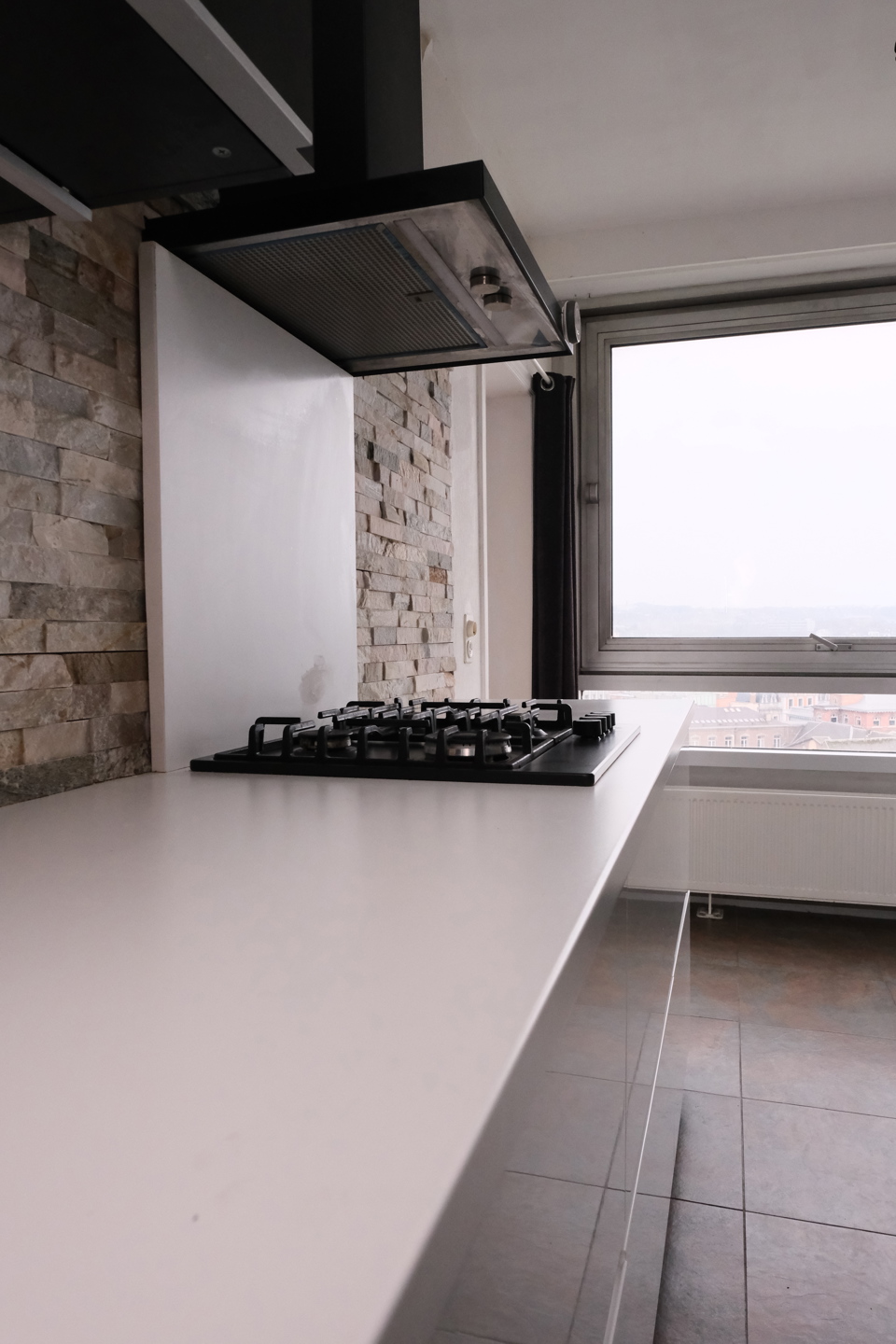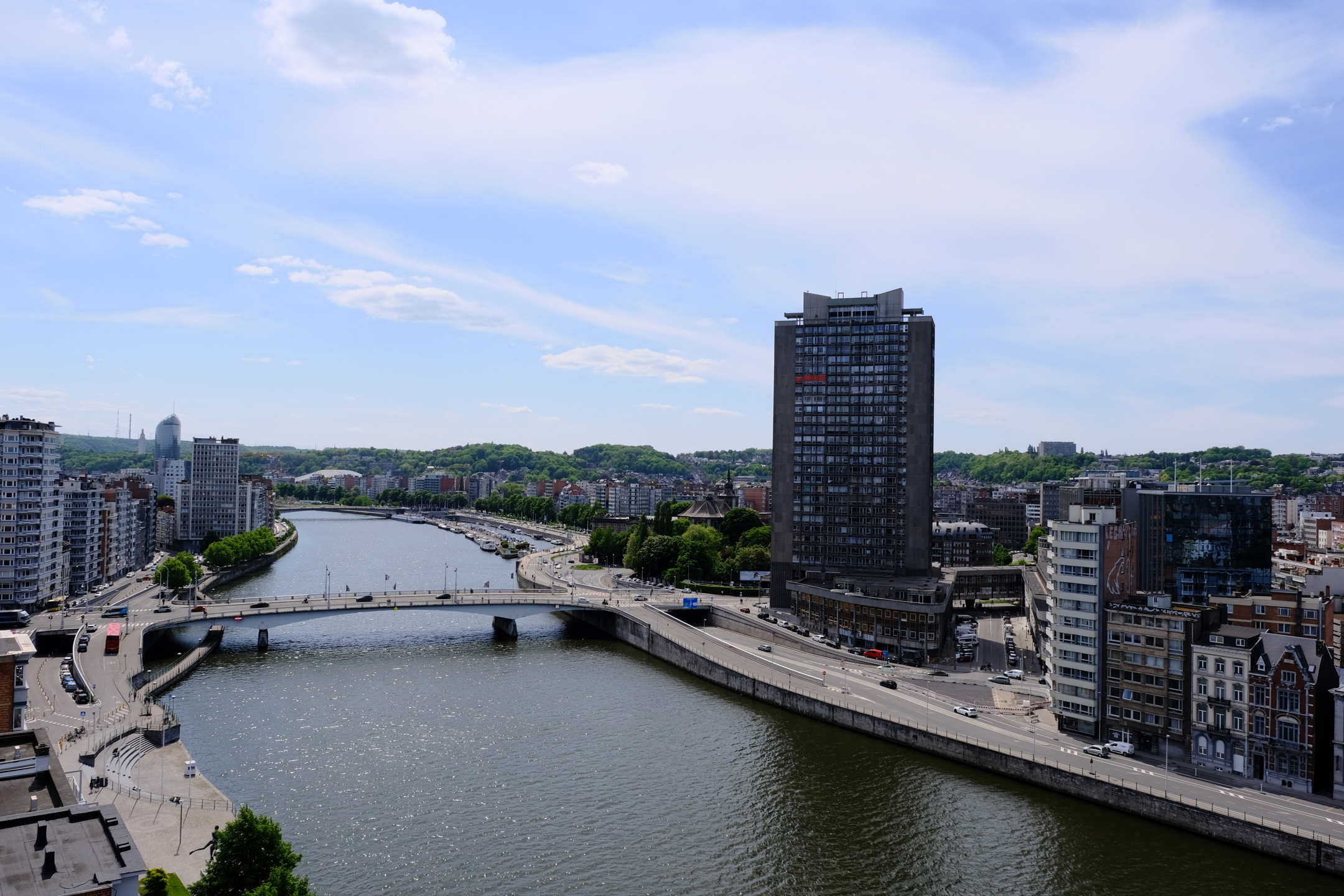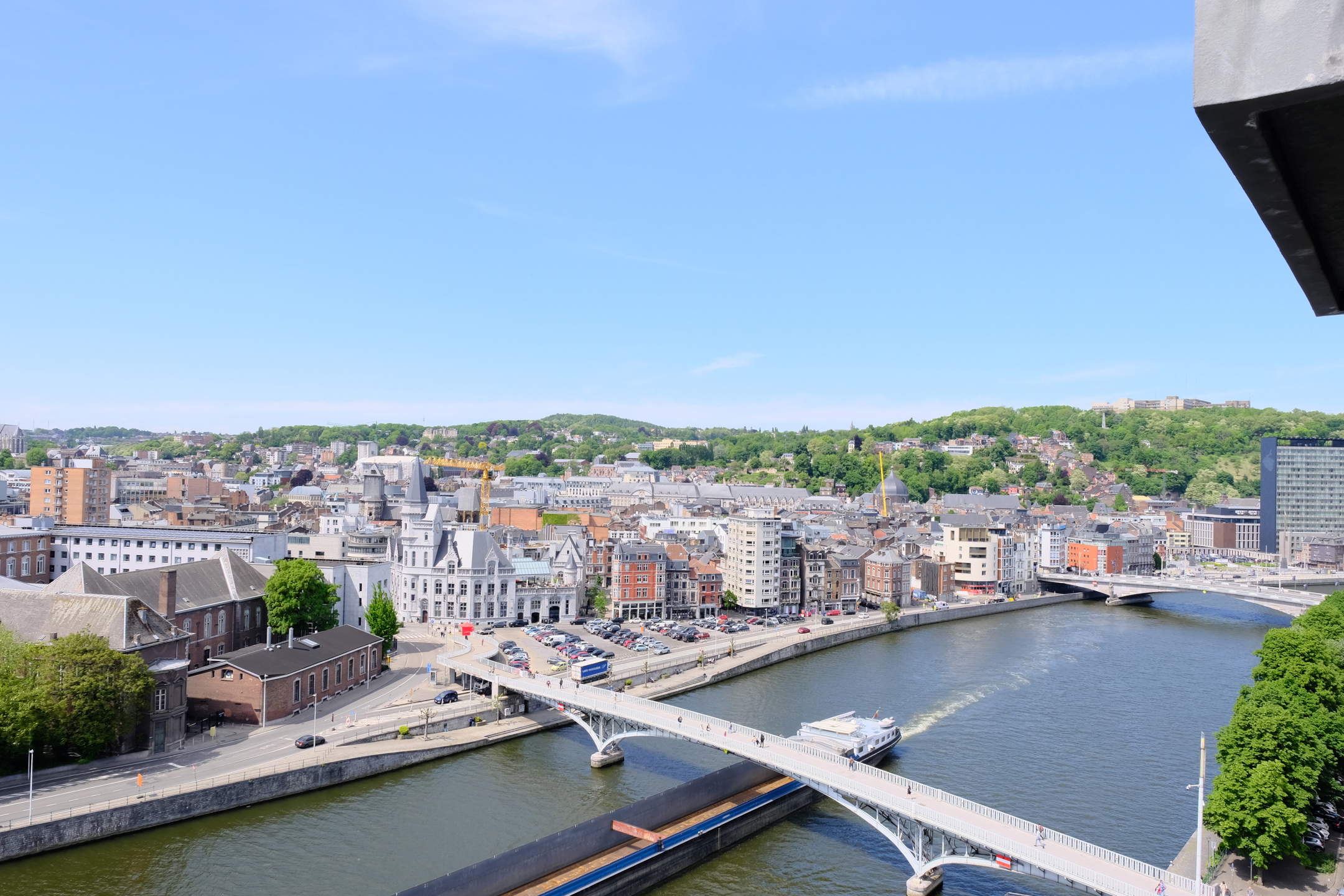 Dans un immeuble de standing au quatorzième étage avec ascenseur, il offre une vue panoramique sur la Meuse et la ville de liège.