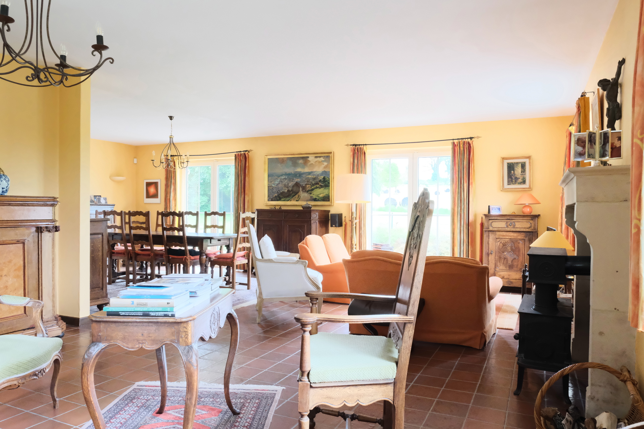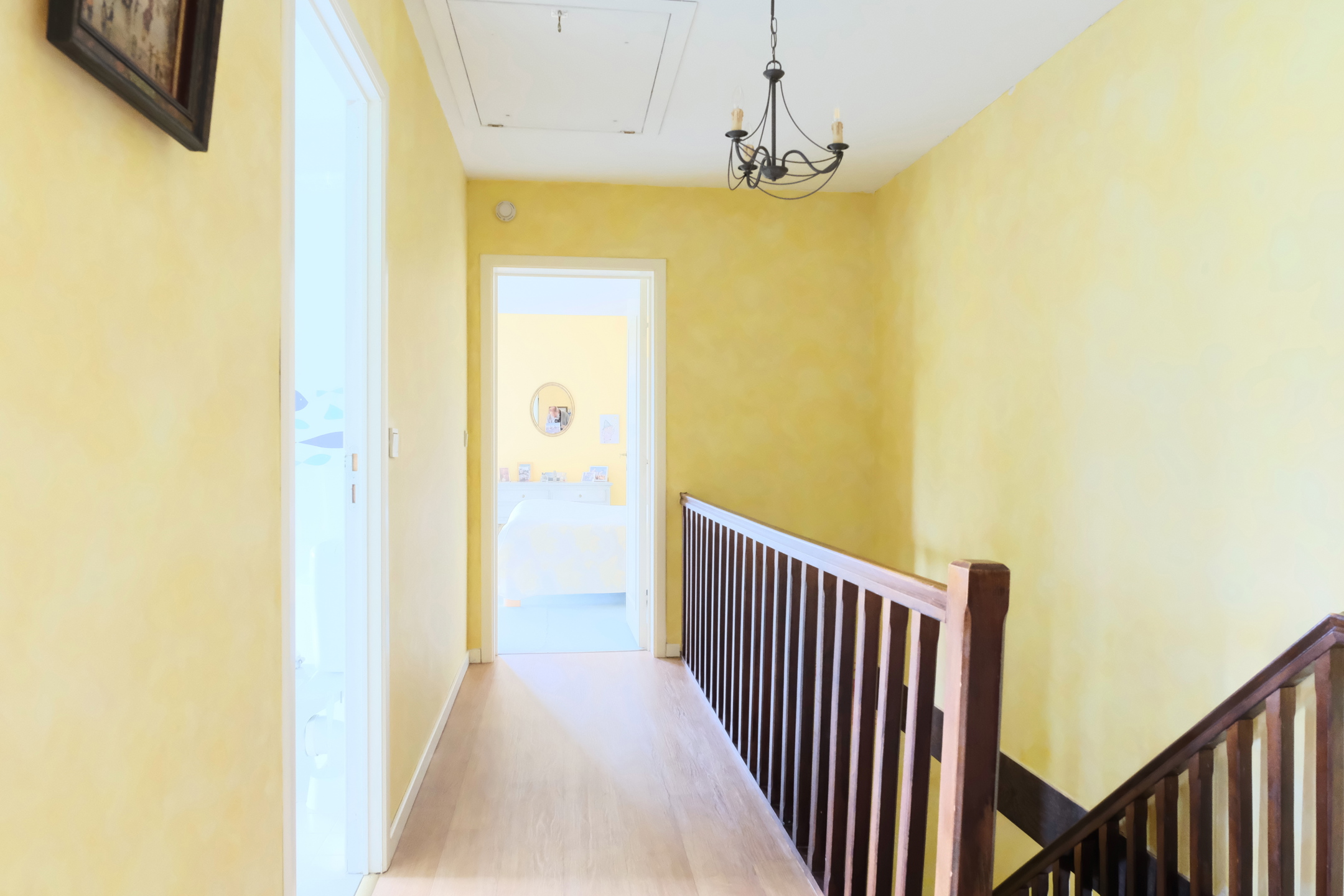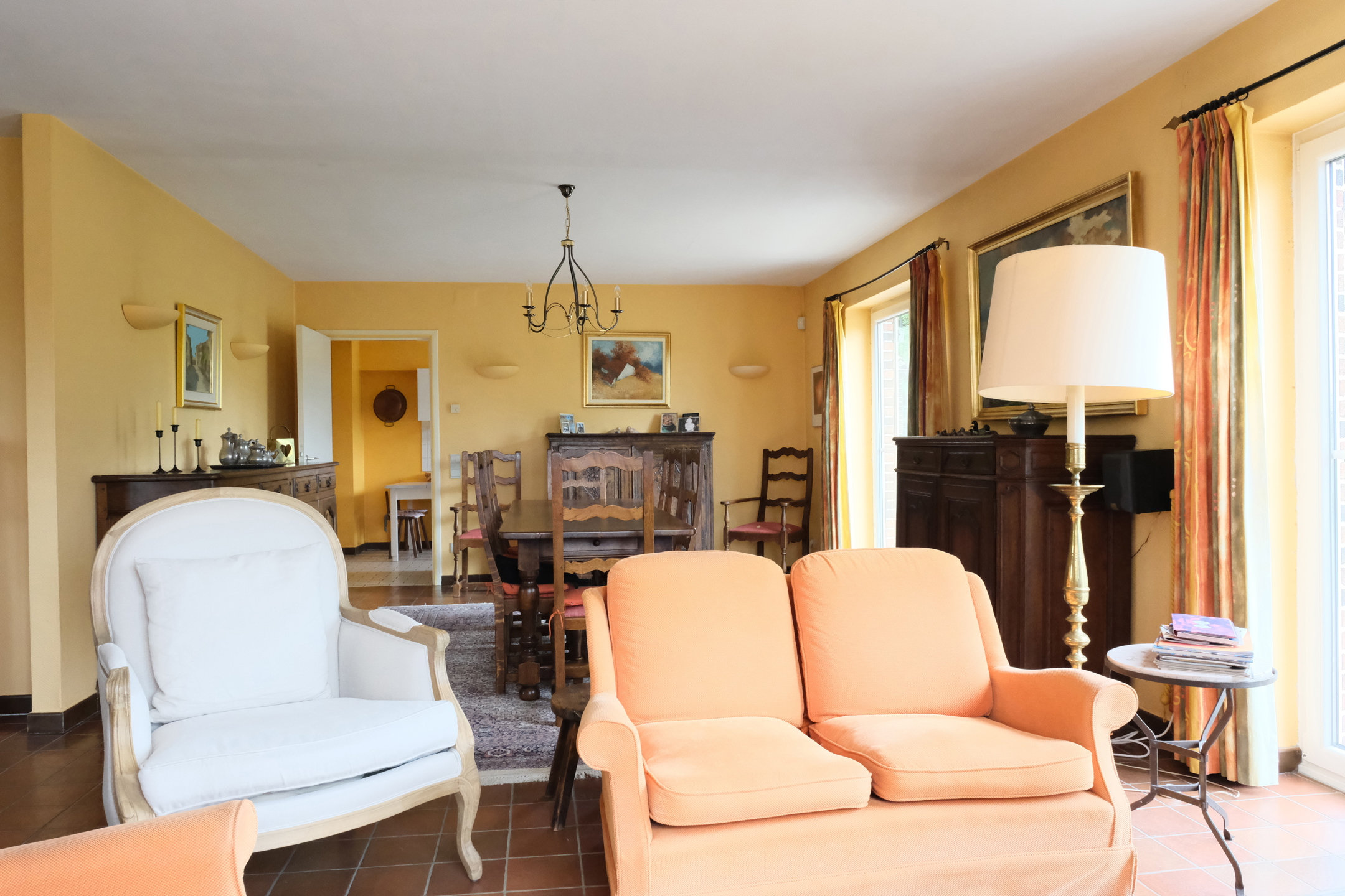 Cette demeure vous accueil avec un hall confortable qui distribue les pièces de vie avec un vaste living qui s’ouvre sur le jardin et sa piscine, une cuisine, une buanderie l’accès au caves et le garage deux voitures.