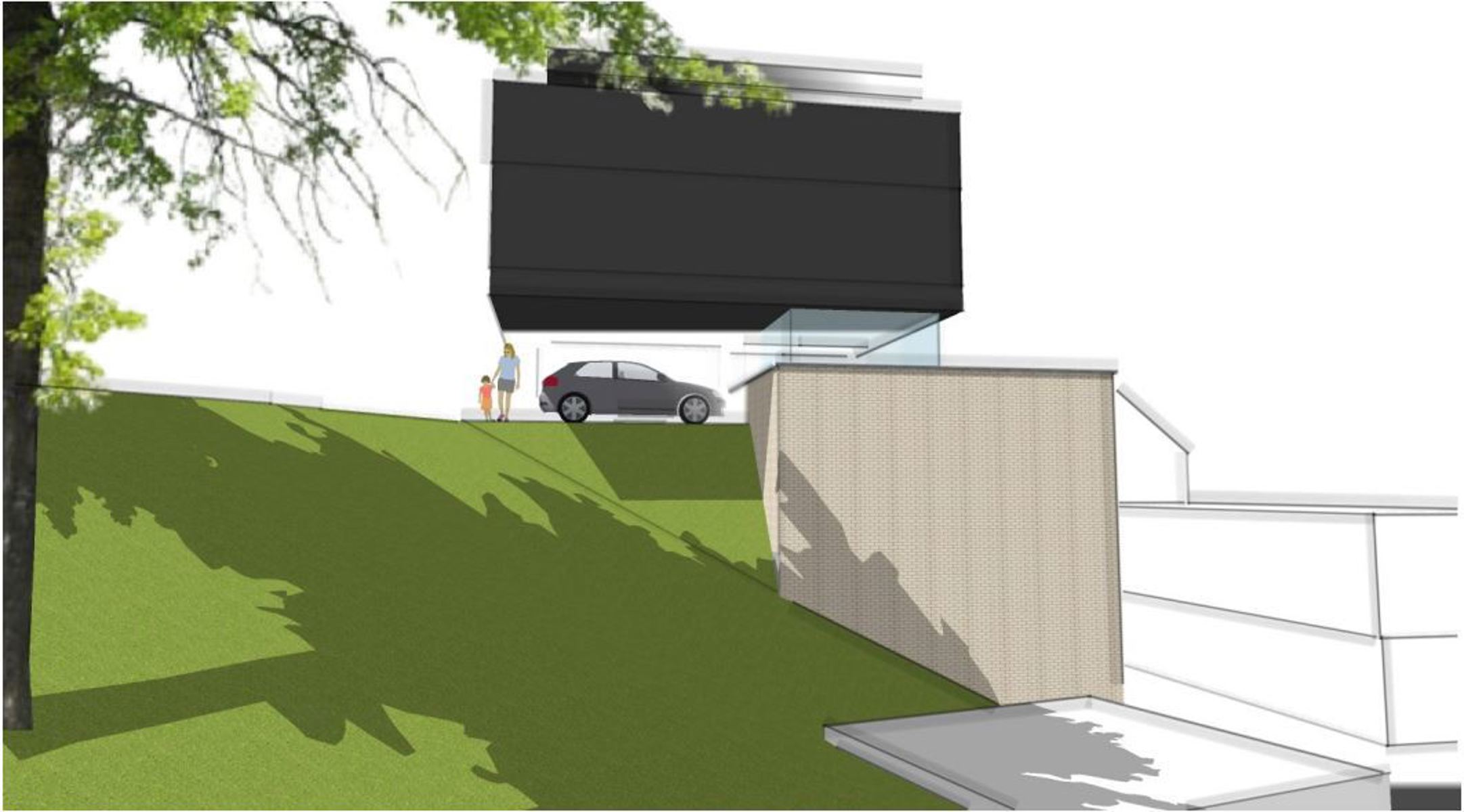 Le terrain en forte déclivité à l’avantage d’avoir deux façades, une sur la rue Marcel Thiry et l’autre sur l’avenue des Tilleuls.